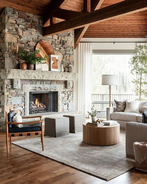 This design style incorporates practical, comfortable living by mixing together medias inspired by nature. You may find a mixture of wood, stone, and earth tones. Picture yourself relaxing in a room with natural wood beams on the ceiling, a comfy oatmeal colored couch and a glass vase of eucalyptus adorning the fireplace.